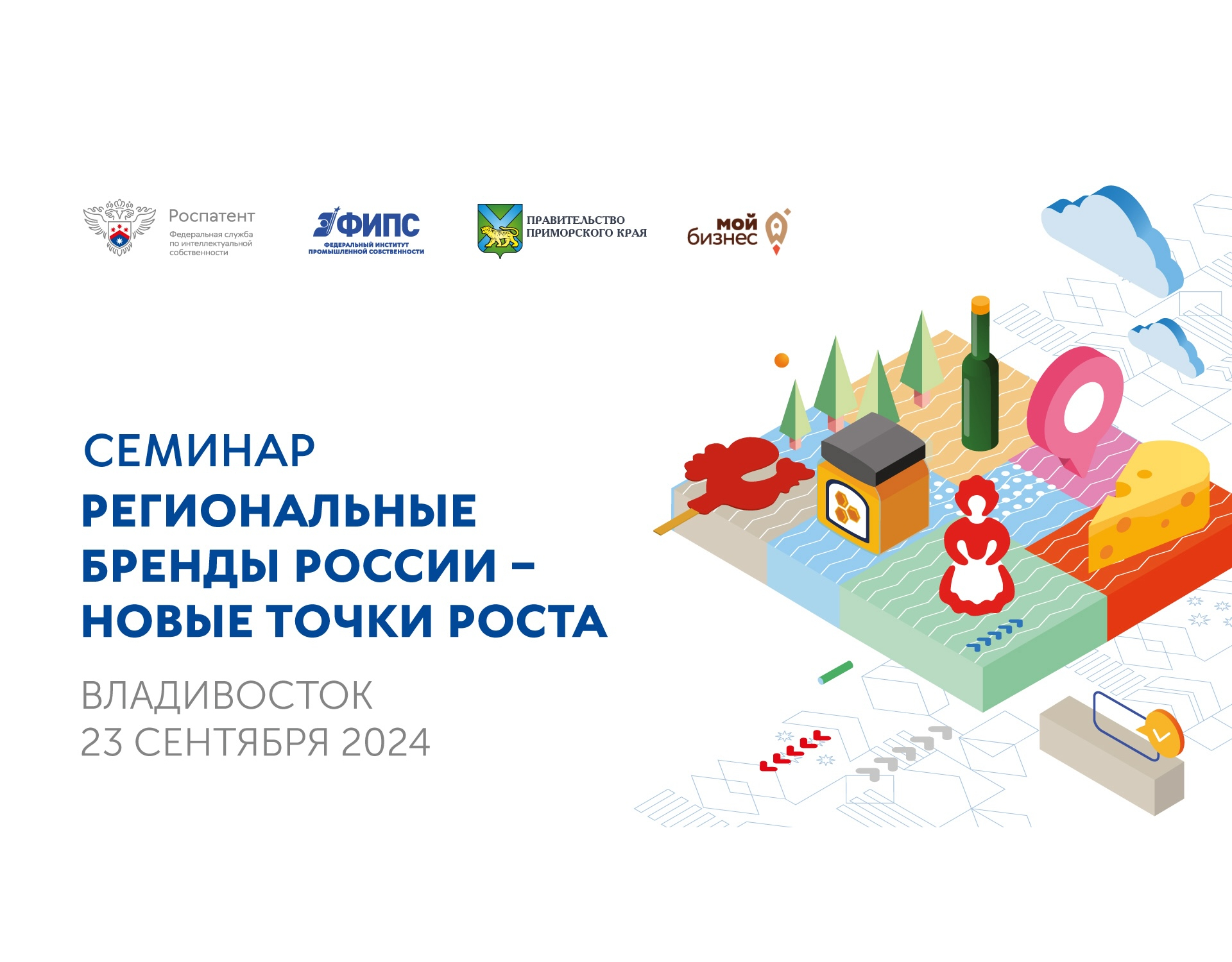 Роспатент при активном содействии сенатора Совета Федерации Федерального Собрания Российской Федерации Александра Ивановича Ролика, а также при поддержке министерства экономического развития Приморского края и центра «Мой Бизнес», проводит обучающий семинар «Региональные бренды России – новые точки роста". На семинаре специалисты Роспатента, ФИПС простым языком расскажут представителям регионального бизнес-сообщества, товаропроизводителям, представителям власти, научным работникам, преподавателям, и другим заинтересованным лицам об интеллектуальной собственности в целом и таких объектах как географическое указание (ГУ) и наименование места происхождения товара (НМПТ), в частности, в том числе: